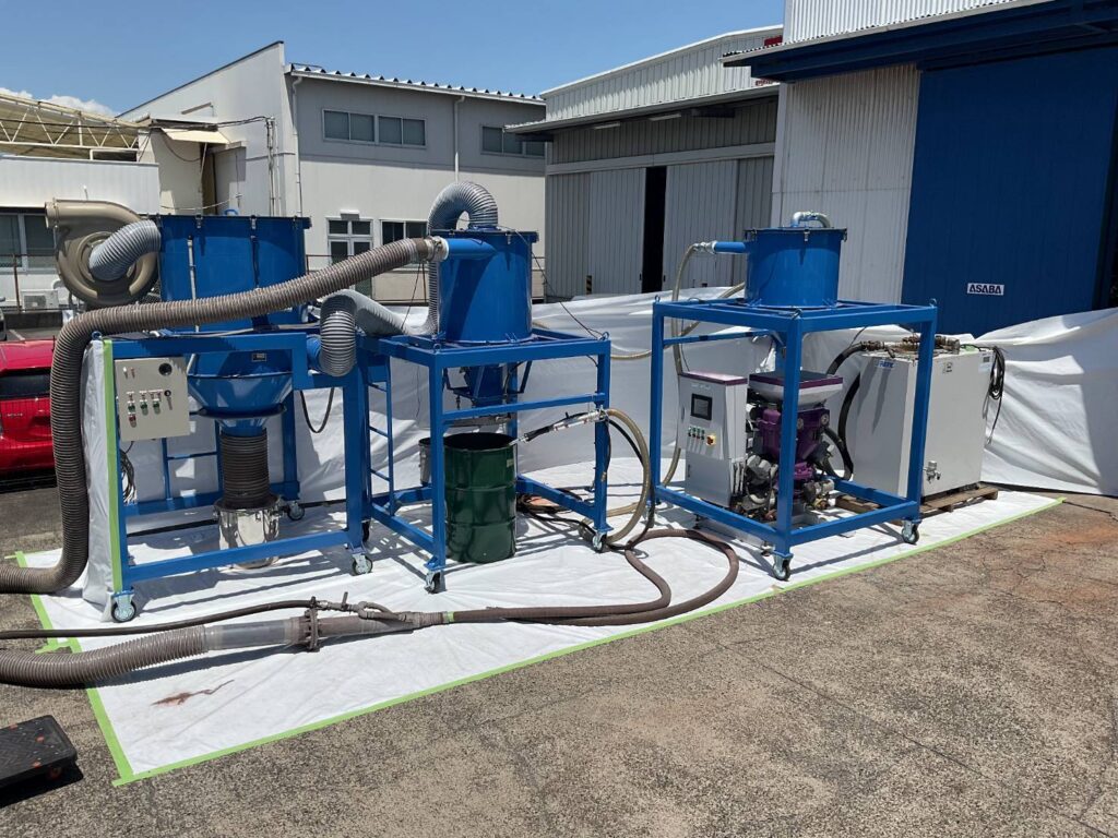 5月の環境展にご来場いただき、ご注文いただいた分別機(JTR700)と回収機(JC900)の現場作業(橋梁の塗装研削)に立ち合わせていただきました。